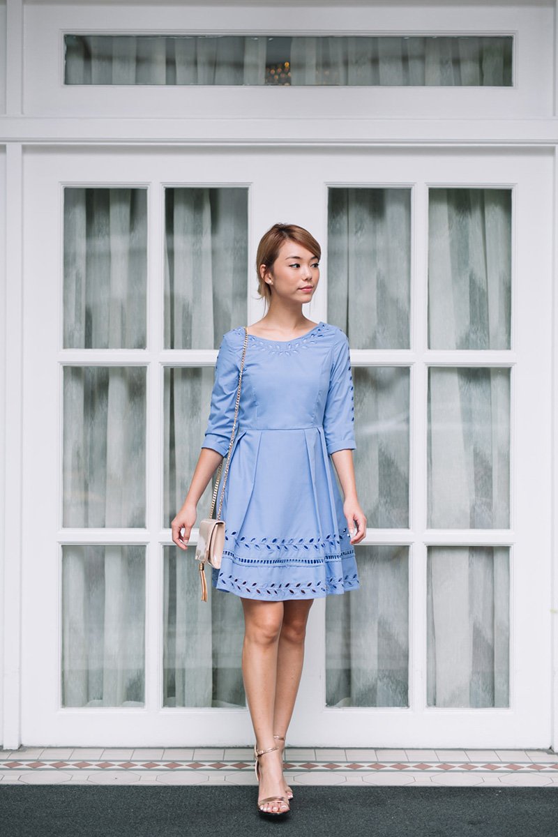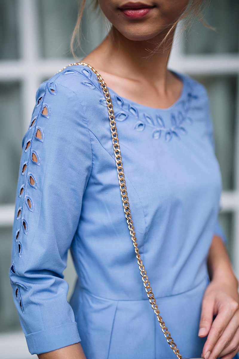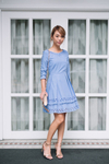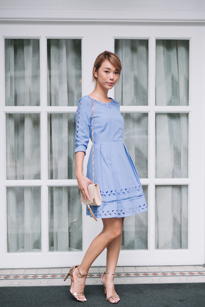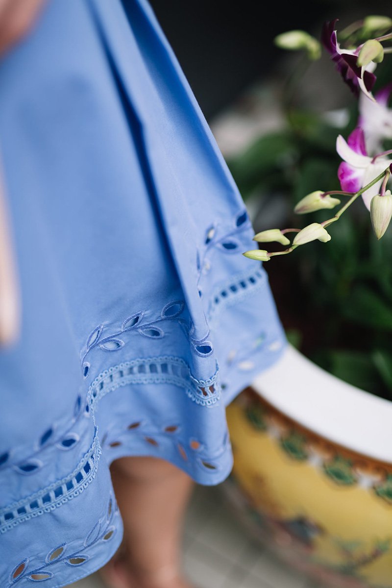 When looking to add nature-inspired intrigue to your ensemble, slip into our Laurel Garland Dress to exemplify the elegance of the greater beauty. This lovely dreamy periwinkle dress showcases an illusion neckline embroidered with laurels, while every moment in this frock is made more enjoyable with the cutout detailing on its 3/4 sleeves, keeping your spirits light like a leaf in the wind. A crochet insert hemline captivates between two garlands of lovely laurels, boasting the craftsmanship and finesse of needlework.